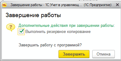 При этом для создания копии программа должна быть открыта и пользователи в ней работать не смогут до завершения процесса. - при завершении работы – каждый раз при закрытии программы будет предложено создать копию.